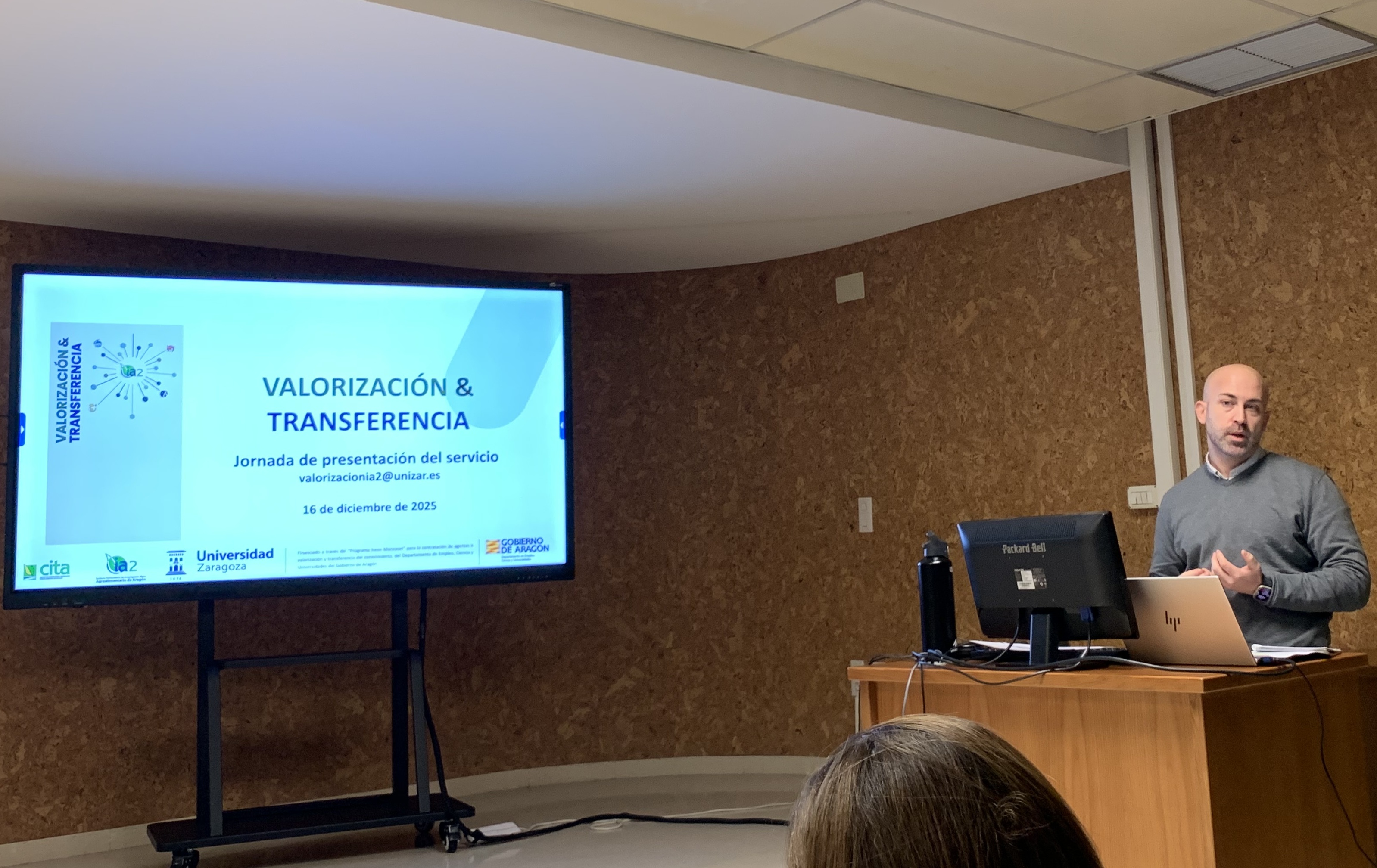Este martes 16 de diciembre de 2025 se ha celebrado en la Sala de Grados de la Facultad de Veterinaria el último seminario interno del IA2 del año con la presentación del Servicio de Valorización y Transferencia. La presentación ha corrido a cargo de Chema Rueda, agente en el IA2 a través del "Programa Irene Monroset" del Gobierno de Aragón.