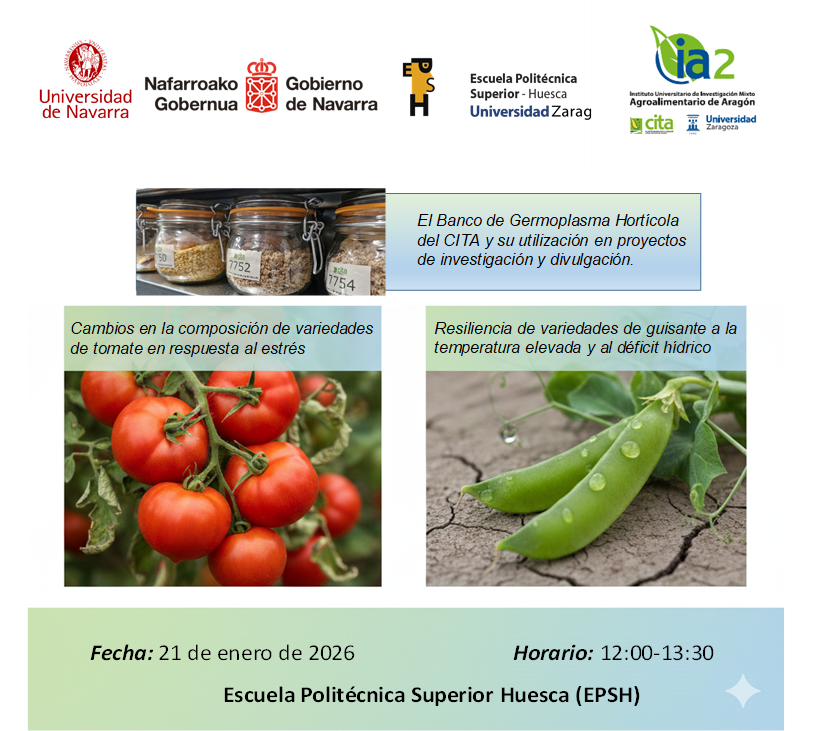 El Instituto Agroalimentario de Aragón (IA2) y la Escuela Politécnica Superior de Huesca organizan una sesión de conferencias el próximo miércoles 21 de enero de 2026 en la que se presentarán tres charlas: