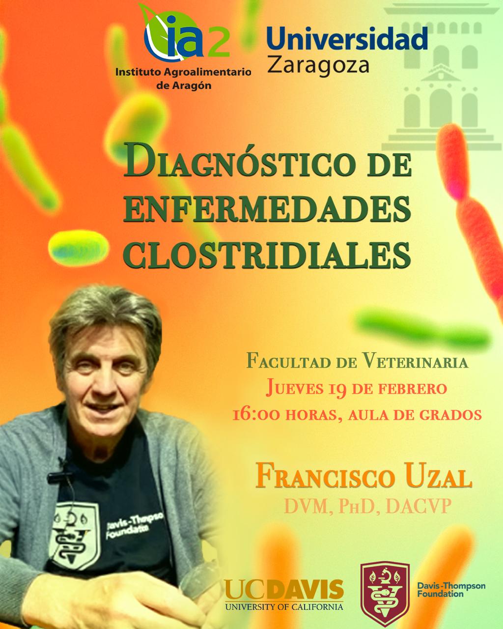 El jueves 19 de febrero tendrá lugar en la Facultad de Veterinaria una conferencia organizada por el profesor del Dpto. de Patología Animal y miembro del Instituto Agroalimentario de Aragón (IA2), Lluís Luján. El ponente será el Dr. Francisco Uzal (Universidad de California-Davis) y su charla llevará por título "Diagnóstico de enfermedades clostridiales".